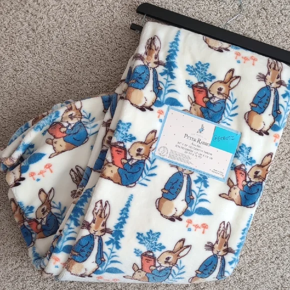 beatrix potter blanket, peter rabbit throw, licensed peter rabbit, plush throw blanket, oversized throw blanket, peter rabbit decor, cottagecore blanket, spring decor blanket, easter bunny blanket, storybook decor, nursery throw blanket, vintage style blanket, cozy plush blanket, peter rabbit gift, bunny themed blanket, collectible beatrix potter, farmhouse cottage decor
