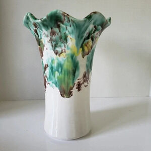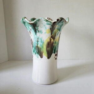 Beauce Canada 437 Green/Brown/White Pottery Vase.