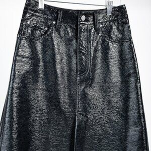 The Beaufille Latona Black Patent Faux-Leather Skirt is made from crinkled vinyl. This skirt is designed to be worn at the waist and cascades to a flattering midi-length hemline, the front slit emphasizing the shape. Elevate your wardrobe with this versatile and chic piece.