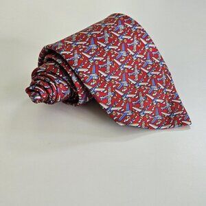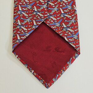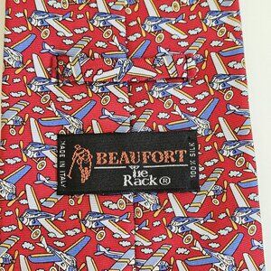 Beaufort Tie Rack Silk Tie Italy Red Multicolor Airplanes Clouds AOP W3.75 L59.5