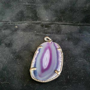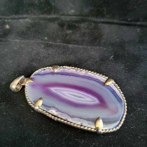 Beautiful Agate Pendant with silver landing and clasp~ Unmarked