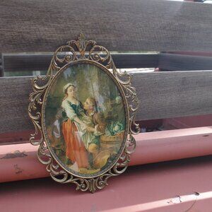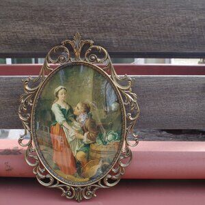 Beautiful antique convex glass brass picture ,in very good condition .Made in Italy ,early 20th century. The size is 91/2 wide by 13 inches long, great look for any wall.