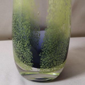 Beautiful Artist signed Tulip shaped glass art Vase with green and Purple-Blue palette, lovely.