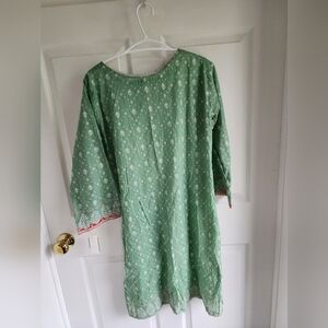 Beautiful Artsy Bohemium Green Embroidered Coverup with Side Slits