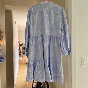 Stunning baby blue floral-embroidered 100% cotton dress with tiered skirt. Cotton lining. From Brooks Brothers (2022 collection I believe).