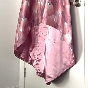 Look bold and beautiful in this pink neon abstract print dress, enhanced with a bardot neckline and dipped hem.