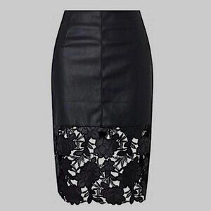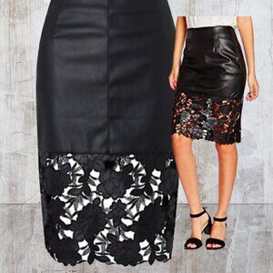 Beautiful Black Faux Leather Skirt Lace Cut out bottom