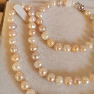Stunning set of light multicoloured freshwater pearls in a necklace and earring set.