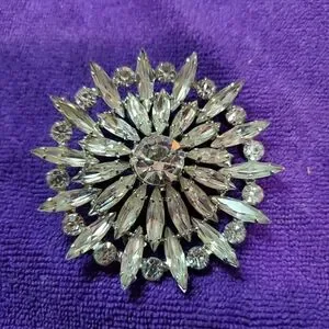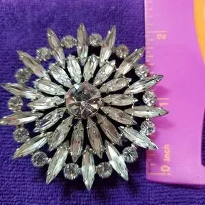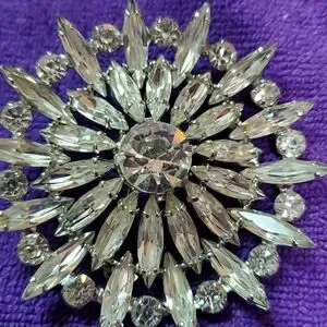 Beautiful Big Rhinestone Clear Brooch. think it's Vintage there's writing on the back, can't make it out. very stunning on a jacket