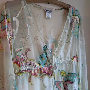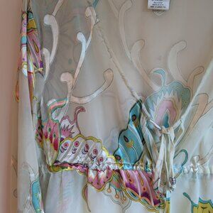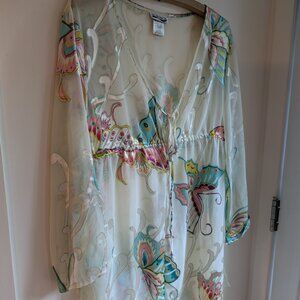 Beautiful Butterfly Multi-Colored Swim Beach Coverup / Sheer Top – Size XL