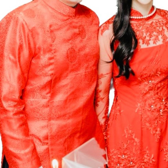 Female Ao Dai 3 pc. includes dress, pants and head piece made of beautiful lace and is lined