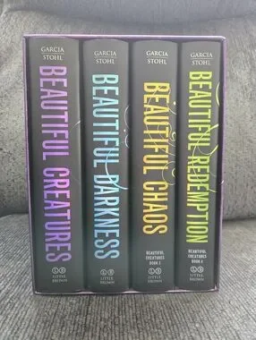 Beautiful Creatures boxed set. Hardcover edition book 1-4. Some sun discolouration lines as shown on book tops. Very good used condition.