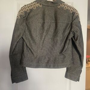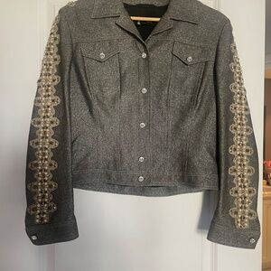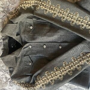 Beautiful never worn Escada Jean jacket with silver threading, rhinestone buttons and exquisite beading along shoulder and arms.