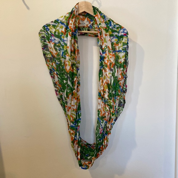 A great accent infinity scarf for any outfit! Lovely abstract floral pattern. Quite soft (unsure of the material, there is no tag but it feels like cotton). In perfect condition, worn only a handful of times.
