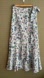 Elegant floral wrap skirt with a tie waist. Features a beautiful blue and pink floral pattern on a white background. Beautiful ruffle detail and a high-low fit.