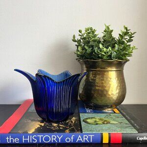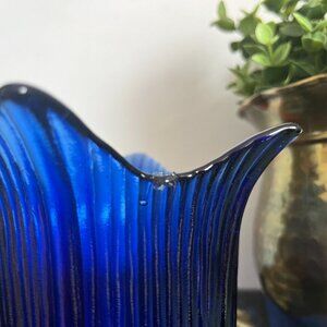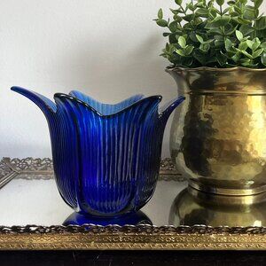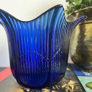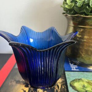 Beautiful Flower Shaped Ridged Petals Cobalt Blue Votive Candle Holder or Catcha