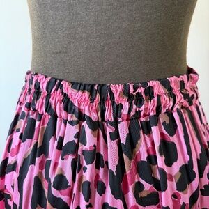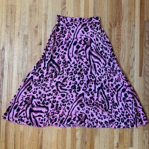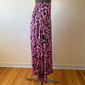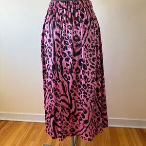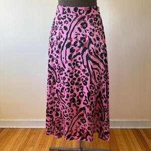 Beautiful Flowy Silk Pink and Black Leopard Print Maxi Skirt