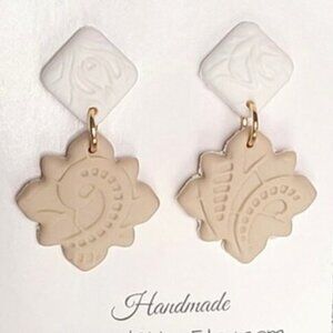 Beautiful Handmade Clay Tan Taupe Colourblock Drop Statement Earrings