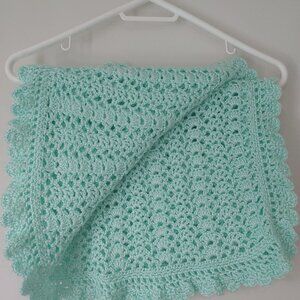 Beautiful Handmade Crochet BABY BLANKET Afghan soft Mint Green with Scalloped
