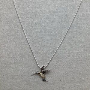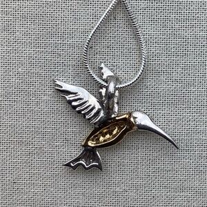 Beautiful Hummingbird Pendant Necklace Sterling Gold and Diamonds