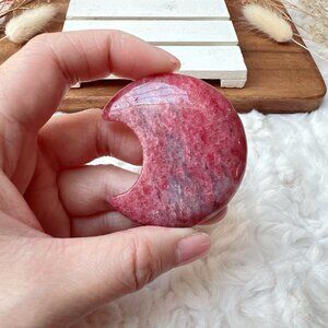 Beautiful Ice Rhodonite Small Moon Carving | Sakura Cherry Blossom Rhodonite