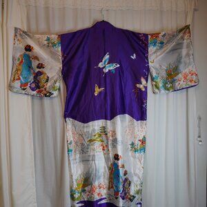 Stunning butterfly and geisha patterned traditional kimono, imported from Japan.