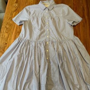 Blue and white striped Kate Spade Broome Street Cotton poplin button down dress. Big skirt, pockets and short sleeve. Gorgeous piece.