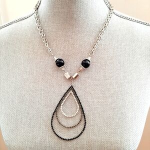 Black & white rhinestone large pendant Double Silverstone chain