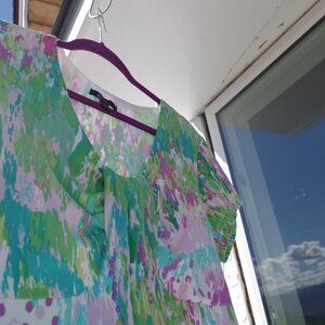 Beautiful Spring dress by Click collection ,size large .The colors are green purple and white .Great for everyday ,or just a night out .Very soft and comfy dress ,the dress is 110cm .