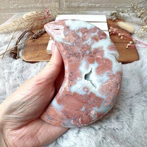 Beautiful Large Cotton Candy Pink Agate Druzy Moon with Stand