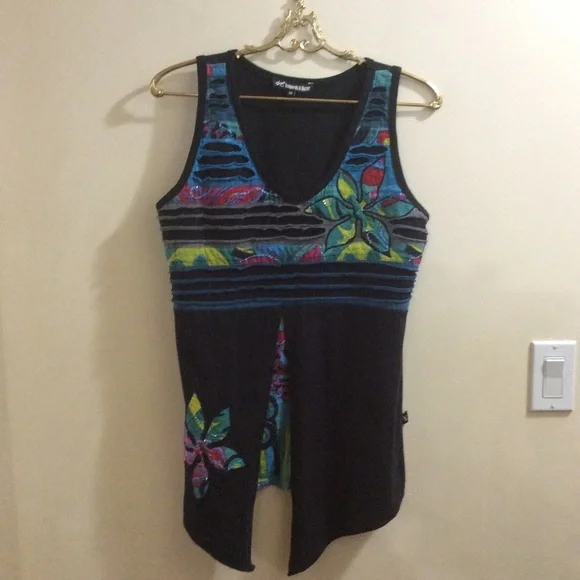 Unique asymmetric Leopards & Roses floral tank.