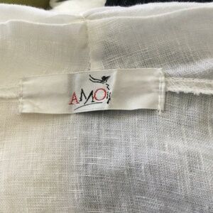 Beautiful white linen from Italian Clothing Co AMO a high end, quality clothing company. Soft white linen, with sleeves that can be worn long or short. The front drapes the body with the “ waterfall effect” draping the front, very flattering on all body shapes. Can be dressed up with a summer dress for evening, or with capris or shorts for a more casual summer look.