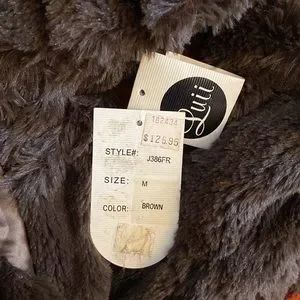 Beautiful and soft, this waist length jacket from Luii is perfect for a fancy event. Side pockets. New with tags. Size medium. Front hook and eye closures with an additional one in a small packet. Bought in US for $125US.