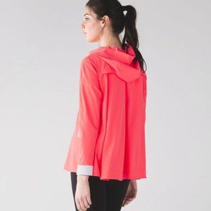 Beautiful Lululemon coral pink hooded windbreaker with white trim