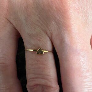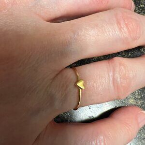 Beautiful Mini Heart Ring. This is a nice 10K yellow gold ring. This can be worn alone or with another ring to stack it. The heart is mini but still has some thickness to it. It gives a nice warm tone to your skin. It is a very nice, delicate piece.