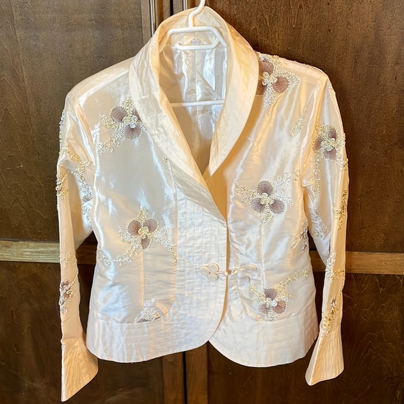 Miniye embroidered jacket, cream colour, lined, fabulous shape, PTP about 21”.