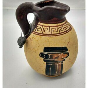 Beautiful Museum Copy of Classic Period 450 BC Greek Jug with Metal Tag - 4 1/4" Tall - 3" diameter at widest point - base is 2" inch diameter