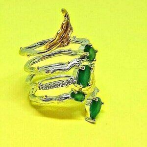 Beautiful Natural Green Agate Gemstone 925 Sterling Sliver Ring (Adjustable)