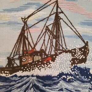 Beautiful Needlecraft of The Mermaid Finished Framed Crewel Signed VF 77.