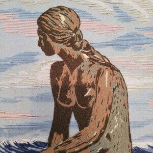 Finished Vintage Paragon Crewel Embroidery The Mermaid by Adele Veres 1976. Rendering of Mermaid in Copenhagen Denmark Harbor. Completed