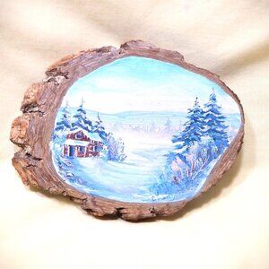 Beautiful ~~~ PAINTING ~~~ on Slice of Original Wood