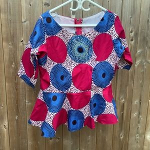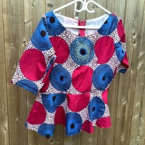 Beautiful Pink and Blue African Print Peplum, Embellished Top, Blouse For Sale