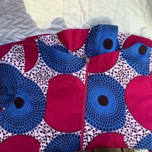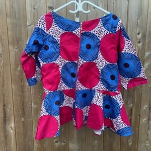 Beautiful Pink and Blue African Print Peplum, Embellished Top For Sale