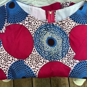 This Beautiful Pink and Blue African Print Peplum, Embellished Top is a solution to various wardrobe challenges! Celebrate cultural pride with this versatile piece, perfect for any occasion. Its timeless style and elegant touch simplify the quest for the perfect outfit. The comfortable design and vibrant colors not only embrace cultural diversity but also make a bold and stylish statement effortlessly, enhancing confidence with every wear.
