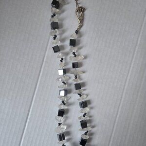 Beautiful Raw Clear Crystal & Hematite Beaded Artisan Necklace