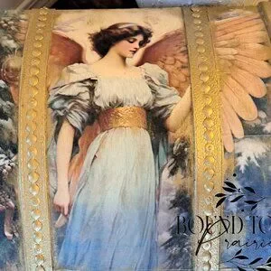 Beautiful restyled box! I've finished this one using Redesign with Prima's new "Wings of Winter" decoupage fiber then touching it up with painted hues and candy cane striping! The golden touch is Posh Chalk's lemon gold pigments on the metal and leather bands! A beautiful box to fill with Christmas display items or in a guestroom filled with goodies for the holidays! Treated to polycrylic topcoat for protection. Measures 16 1/2" long by 11 1/2" wide and 11 1/4" tall.