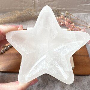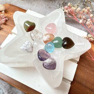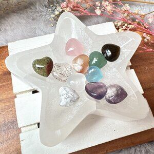 Beautiful Selenite Star Bowl with Mini Crystal Hearts Bundle Gift Set