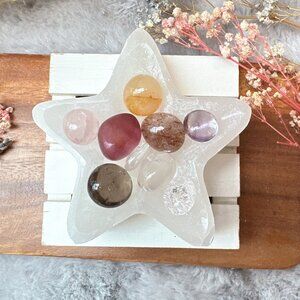 Beautiful Selenite Star Bowl with Mini Crystal Tumbles Bundle Gift Set