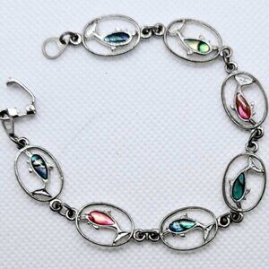 Beautiful Silver Tone Dolphin Link Bracelet With Colorful Backs