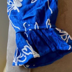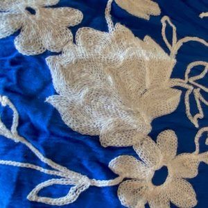 Beautiful bight blue with white flower embroidery